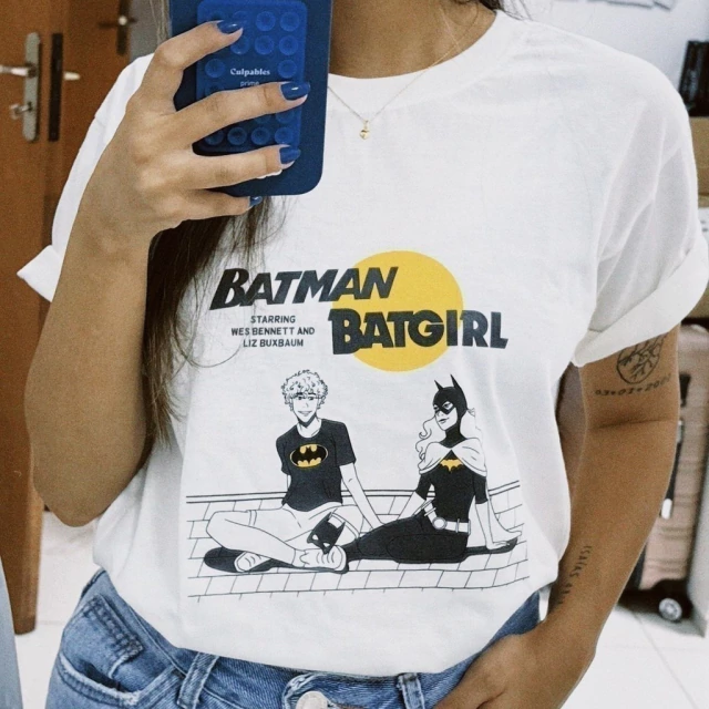 Se você é fã de "Não É Como Nos Filmes", essa camiseta é feita especialmente para você! Com um design que captura a icônica cena do telhado entre Wes e Liz, essa peça se torna um verdadeiro item de colecionador.