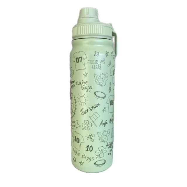 Feita com materiais de alta qualidade, a garrafa é durável e prática, ideal para o dia a dia. Seu formato ergonômico se adapta perfeitamente à sua mão, tornando-a fácil de transportar. Além disso, a estampa é feita com tecnologia DTF (Direct to Film), garantindo que as cores permaneçam vibrantes mesmo após várias lavagens.